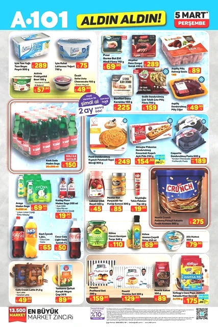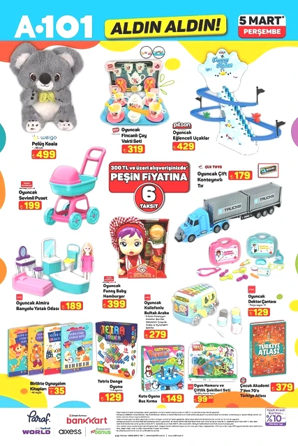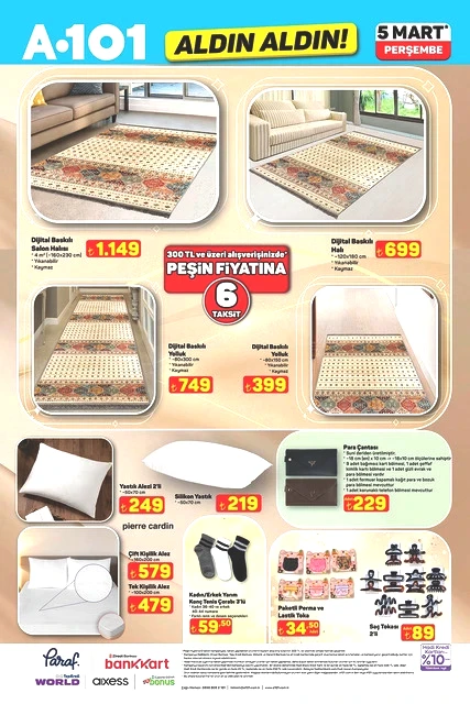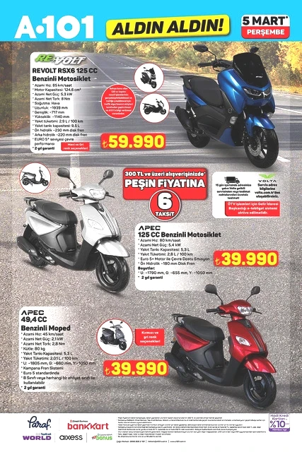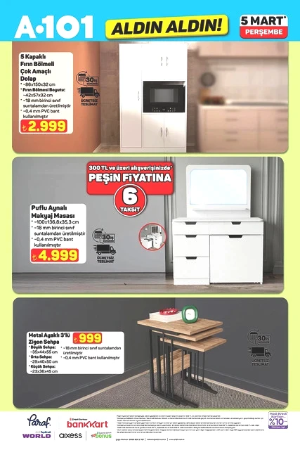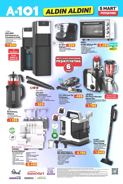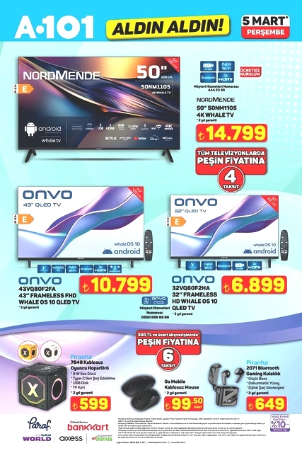 A101, Perşembe günleri düzenlediği kampanyalarıyla tanınırken, 5 Mart 2026 tarihine ait aktüel katalog bilgilerini paylaştı. “Aldın Aldın” sloganıyla raflarda yer alacak yeni ürünler arasında, teknoloji ve ev ihtiyaçlarına yönelik birçok seçenek mevcut. Televizyonlardan ankastre fırınlara, elektrikli süpürgelerden motosikletlere kadar çeşitli kategorilerdeki ürünler, sınırlı sayıda ve farklı fiyatlarla müşterilerle buluşacak. A101’in 5 Mart Perşembe günü sunacağı katalog, alışveriş yapmayı planlayanların dikkatini çekti. İşte ilgili detaylar...