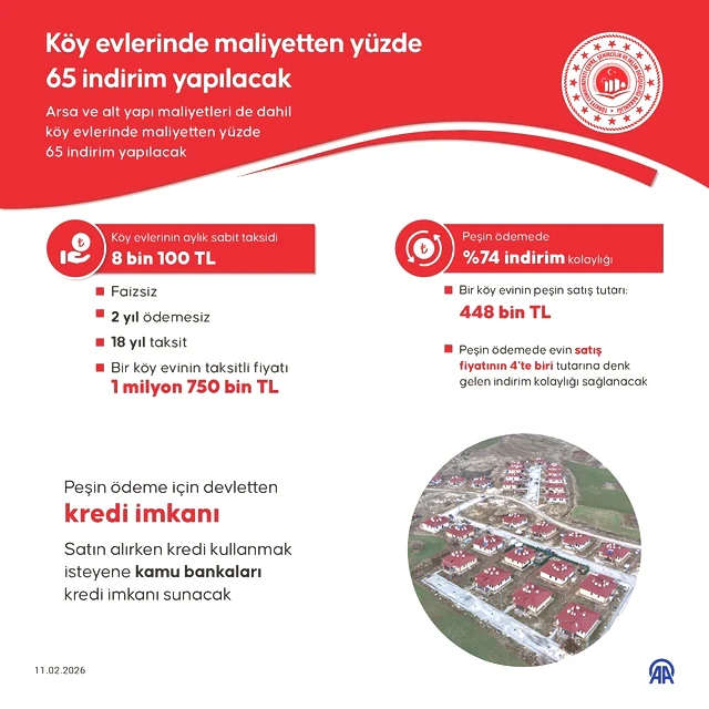 Köy evlerinde peşin ödeme yapmak isteyen hak sahiplerine yüzde 74 indirim uygulanacak ve bu durum, bir köy evinin peşin satış bedelini 448 bin TL’ye düşürecektir.